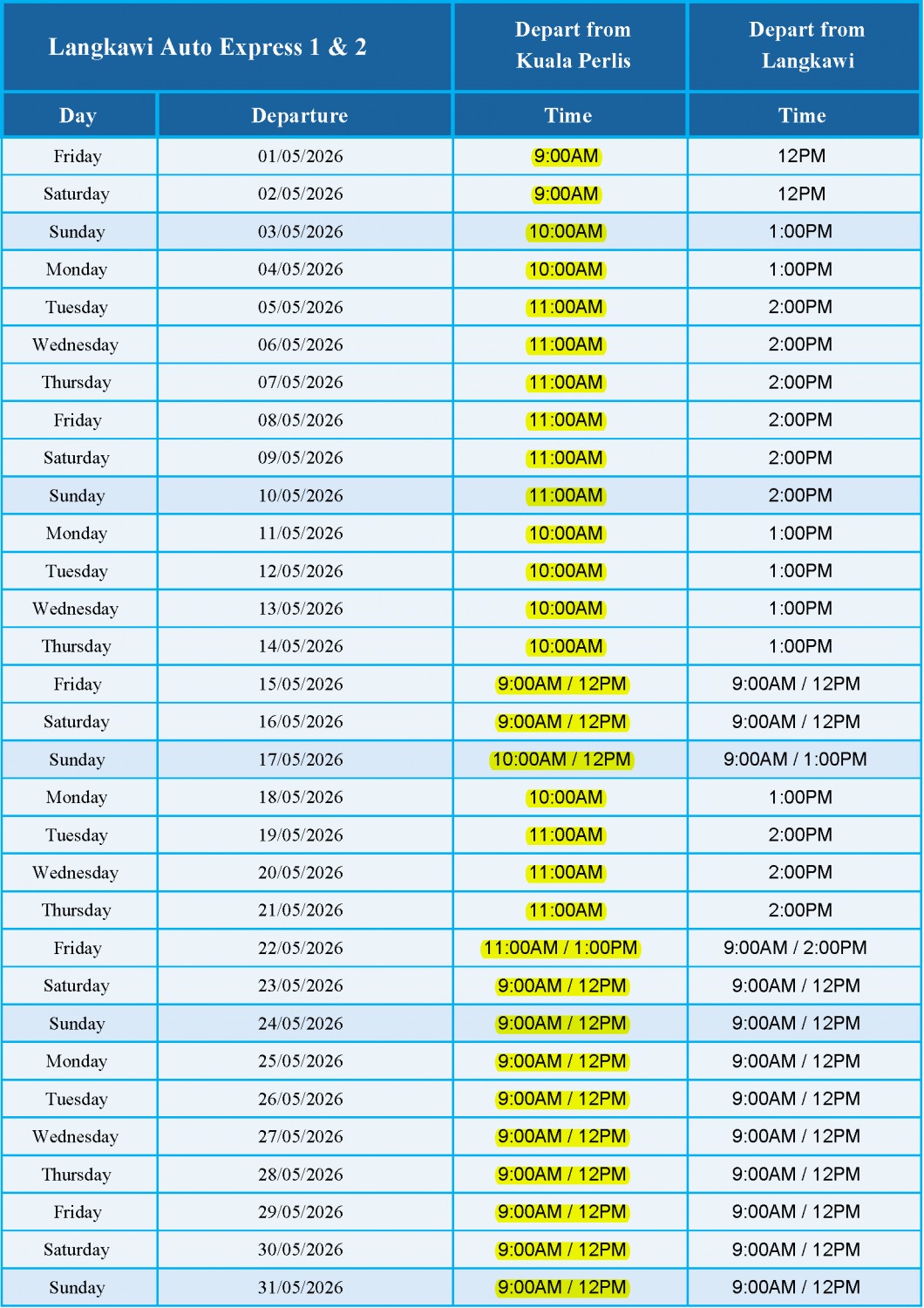 May 2026 Schedule - LANGKAWI AUTO EXPRESS 2