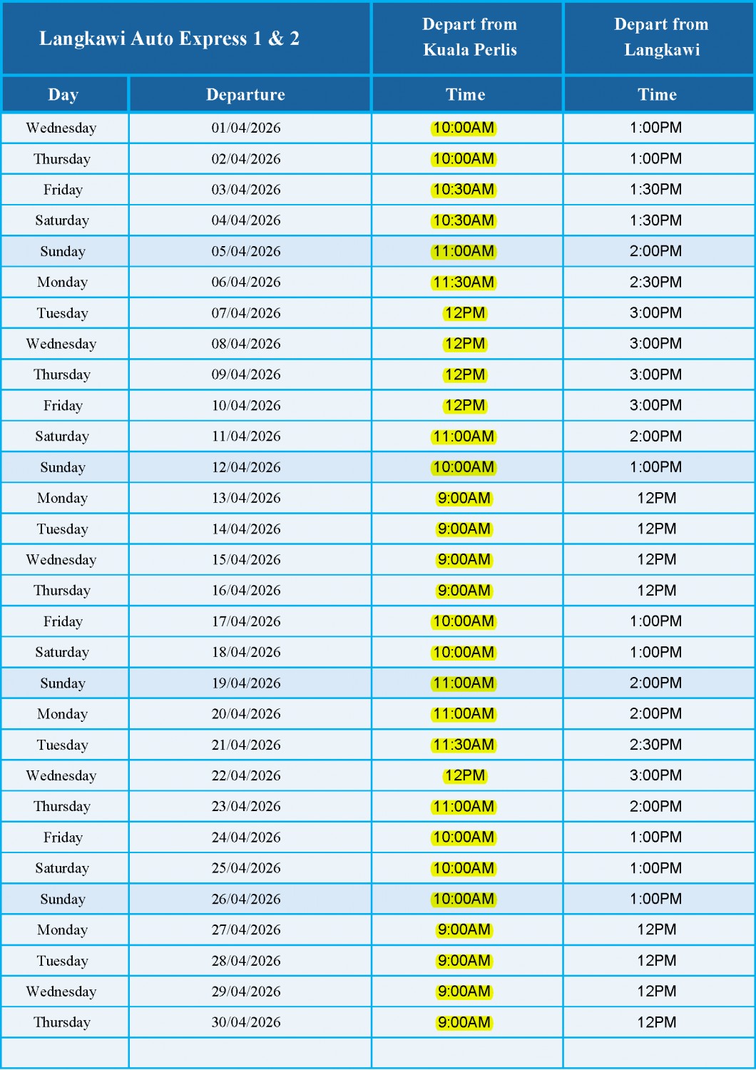 April 2026 Schedule - LANGKAWI AUTO EXPRESS 1