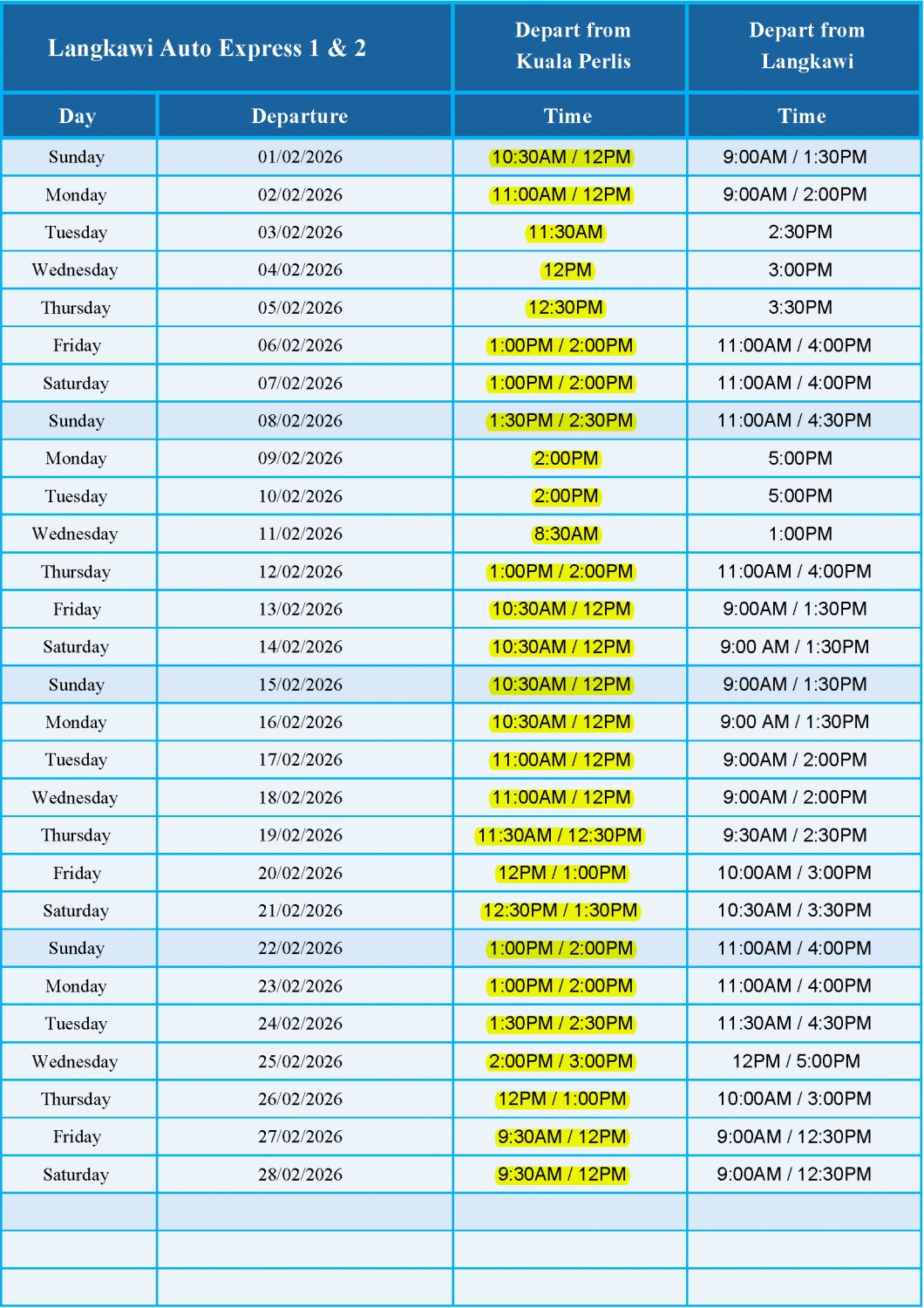 February 2026 Schedule - LANGKAWI AUTO EXPRESS 1