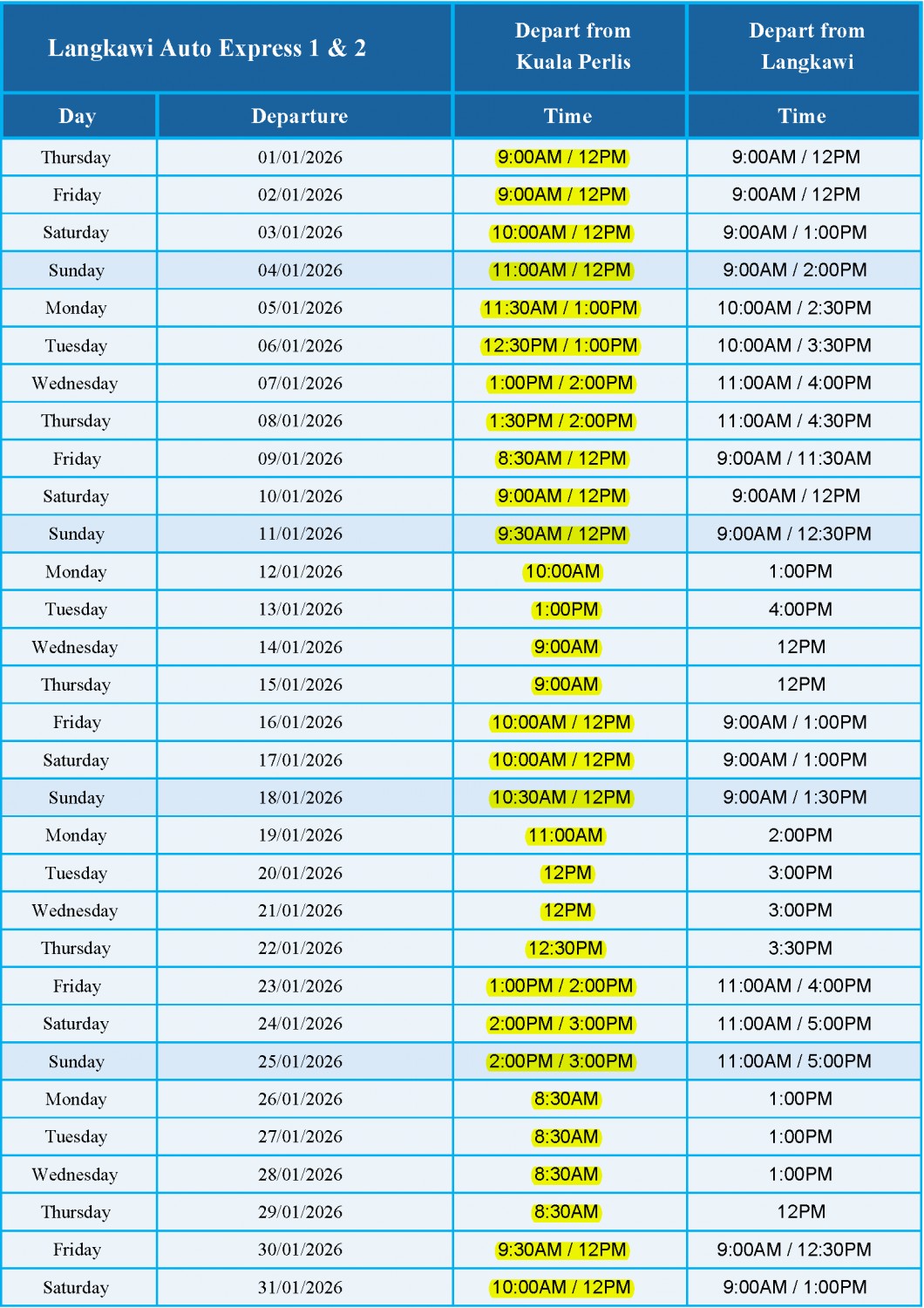 January 2026 Schedule - LANGKAWI AUTO EXPRESS 1