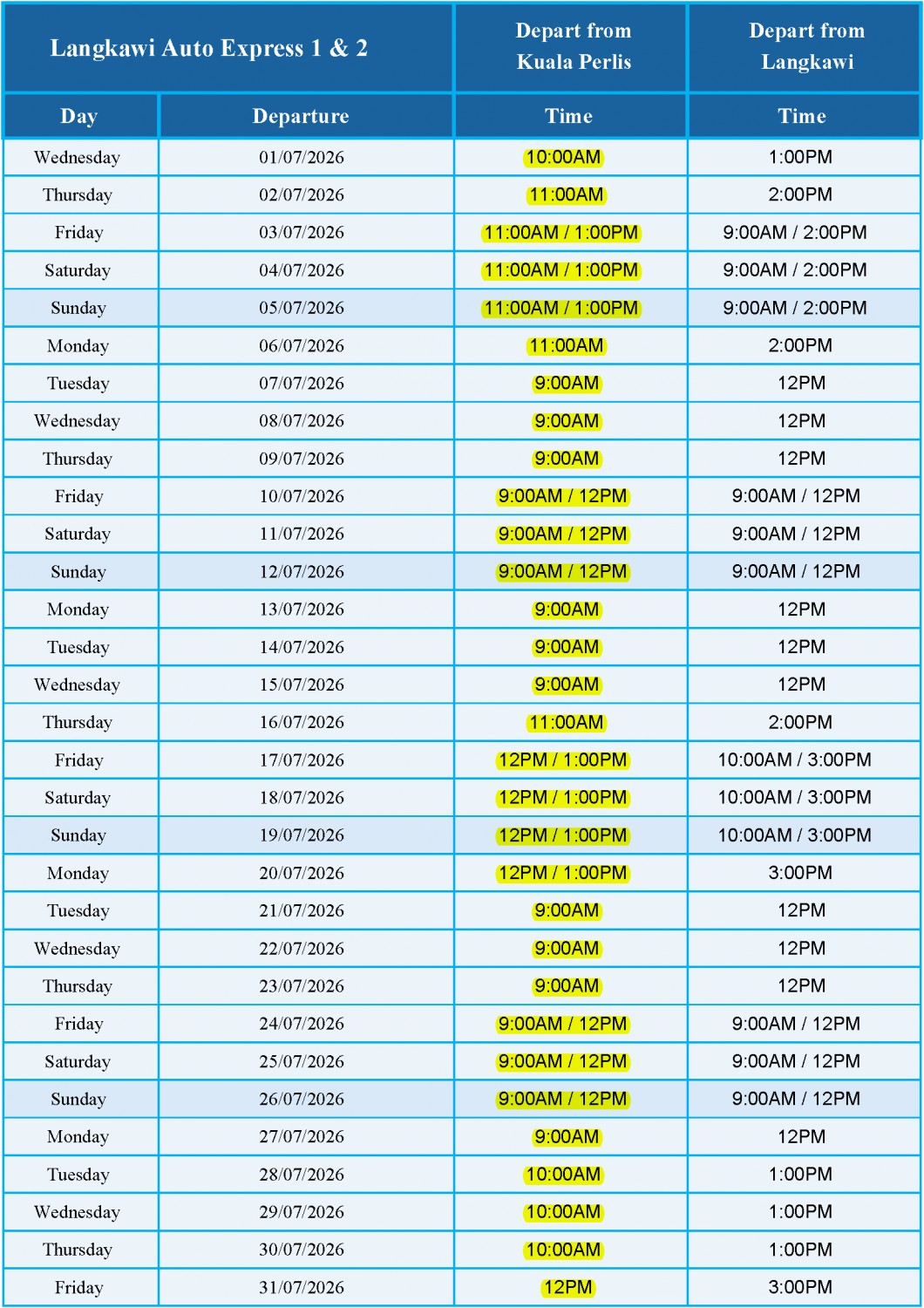 July 2026 Schedule - LANGKAWI AUTO EXPRESS 1