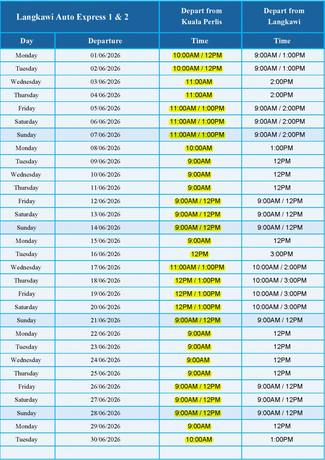 June 2026 Schedule - LANGKAWI AUTO EXPRESS 1