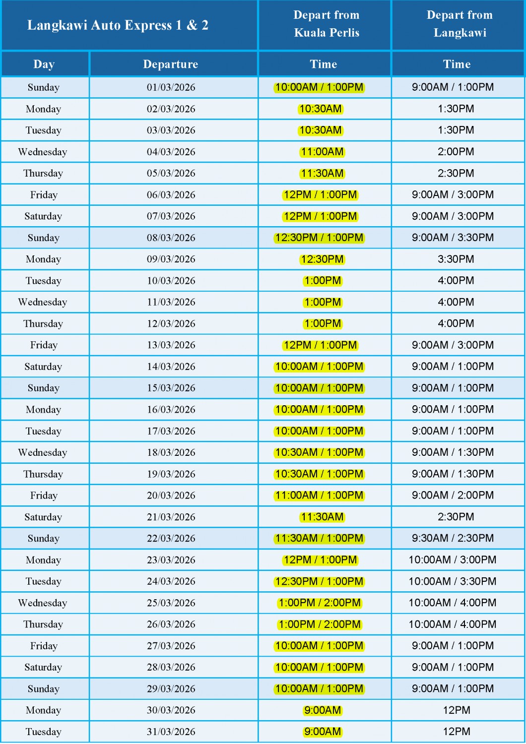 March 2026 Schedule - LANGKAWI AUTO EXPRESS 1