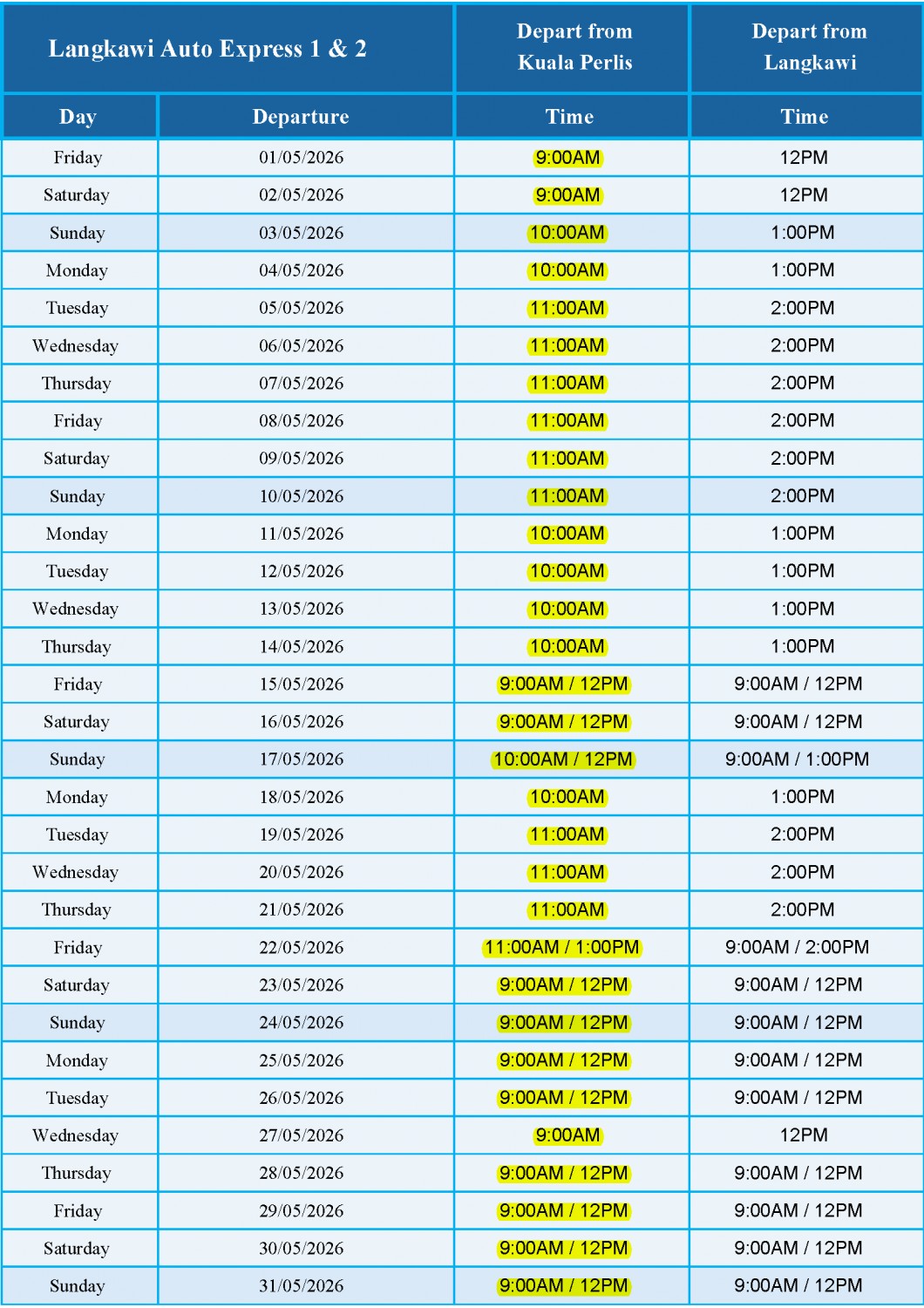 May 2026 Schedule - LANGKAWI AUTO EXPRESS 1